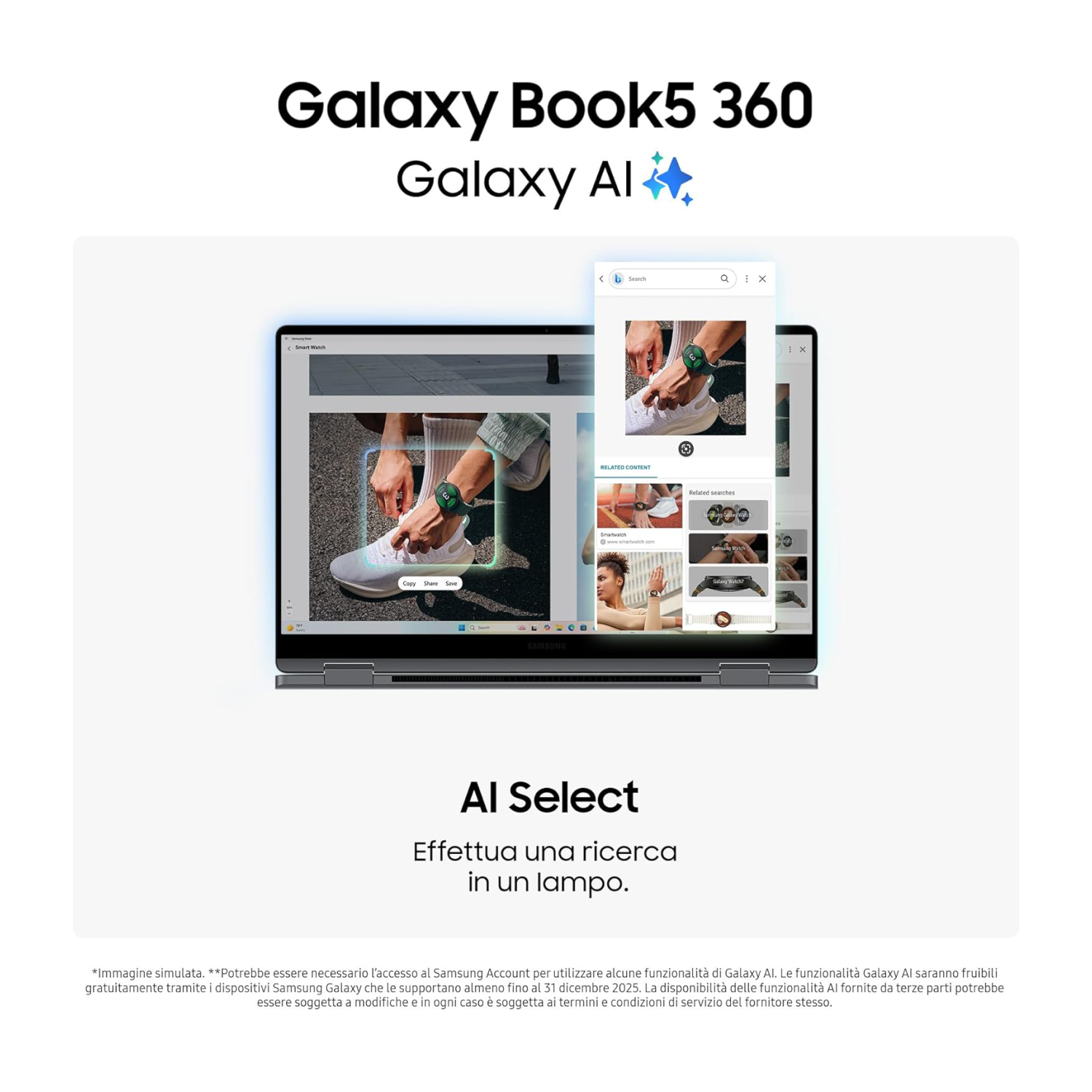 Migliora la qualità delle immagini in modo semplice con l'AI: Ritocca le immagini e ripara le foto sfocate con Photo Remaster, sfruttando la potenza della NPU avanzata di Galaxy Book5 360. Uno tool agile, che utilizza un algoritmo intelligente per donare nuova vita ai tuoi scatti e far brillare come per magia ogni dettaglio.