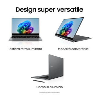 Esprimi il tuo potenziale a 360°: Galaxy Book5 360 asseconda qualsiasi tuo desiderio per adattarsi al tuo stile creativo. Grazie alla struttura sottile e leggera, puoi portarlo con te in classe o in biblioteca. Un dispositivo versatile con cui realizzare bozze anche quando non sei a casa, sviluppare la tua prossima grande idea o rilassarti con tante opzioni di intrattenimento, disponibile in colore Gray.