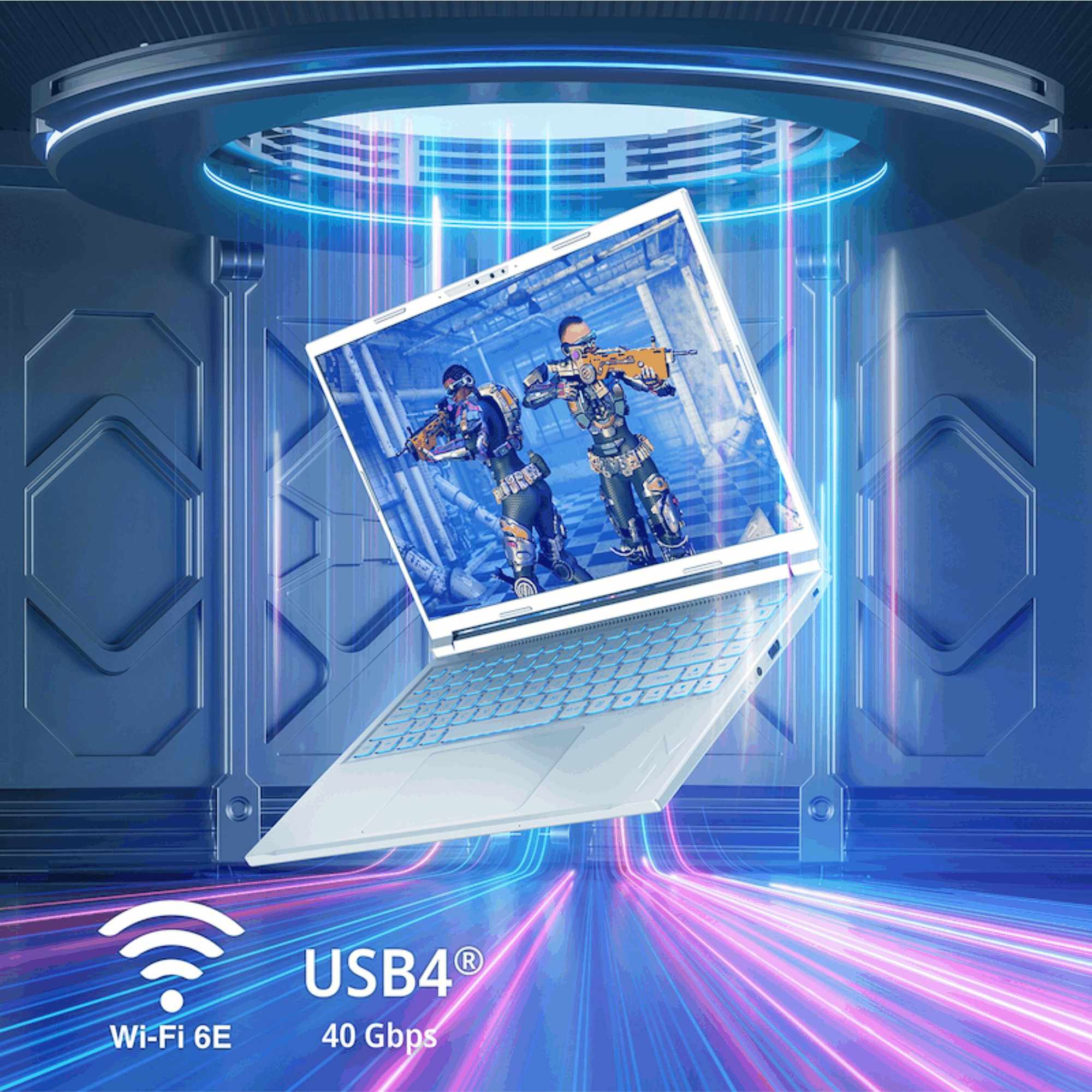 Scatena lo stile e le prestazioni con Acer Nitro V 14 AI. Con un design completamente bianco, un processore AMD Ryzen™ AI e una scheda grafica NVIDIA® GeForce RTX™ 50, questo potente sistema compatto è progettato per i giocatori e i creatori che esigono eleganza e