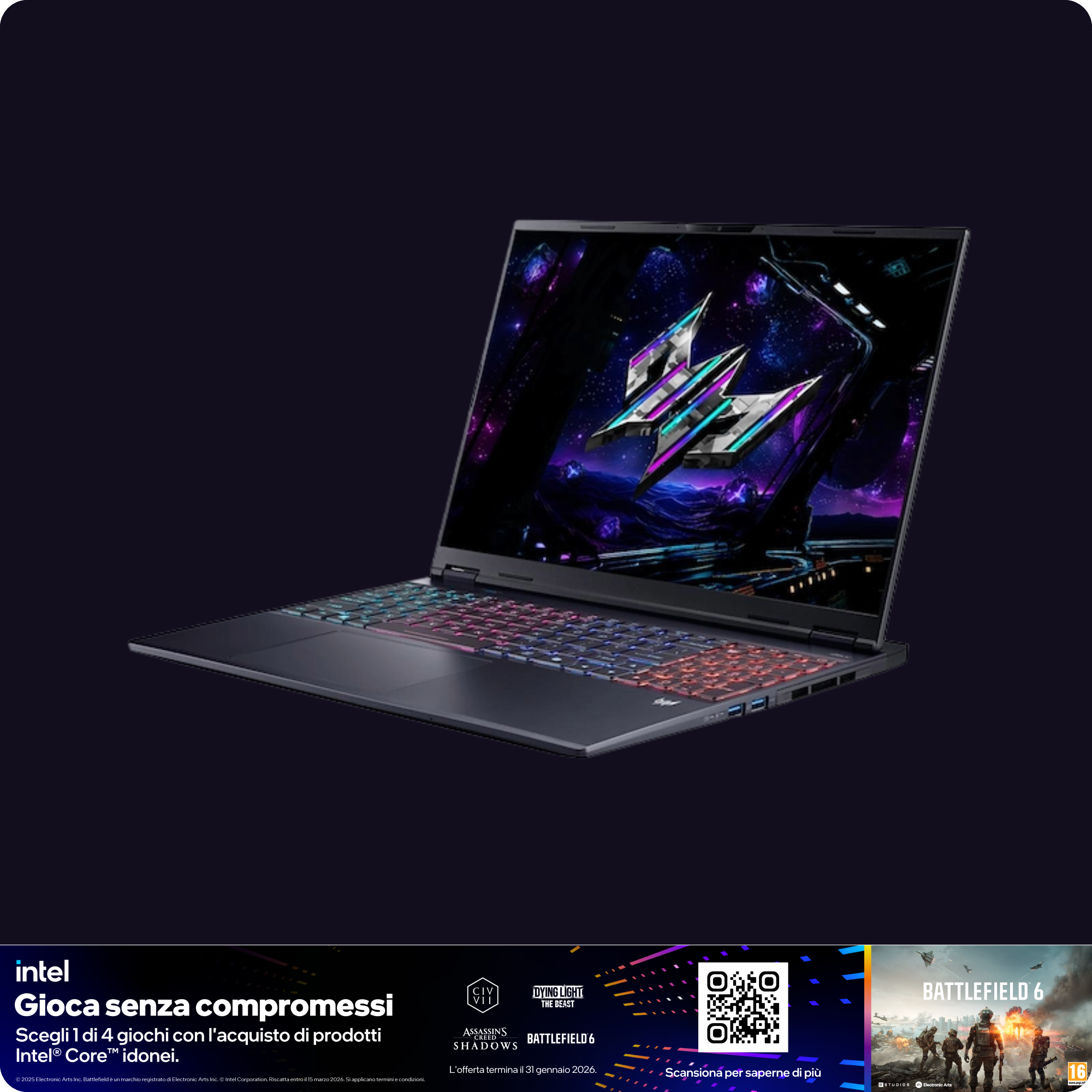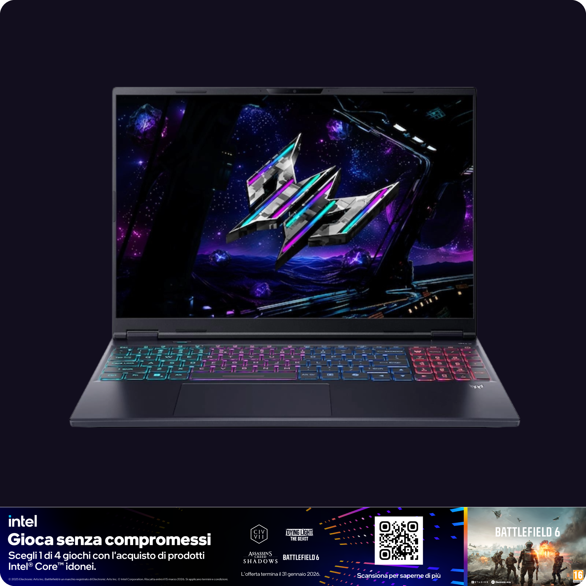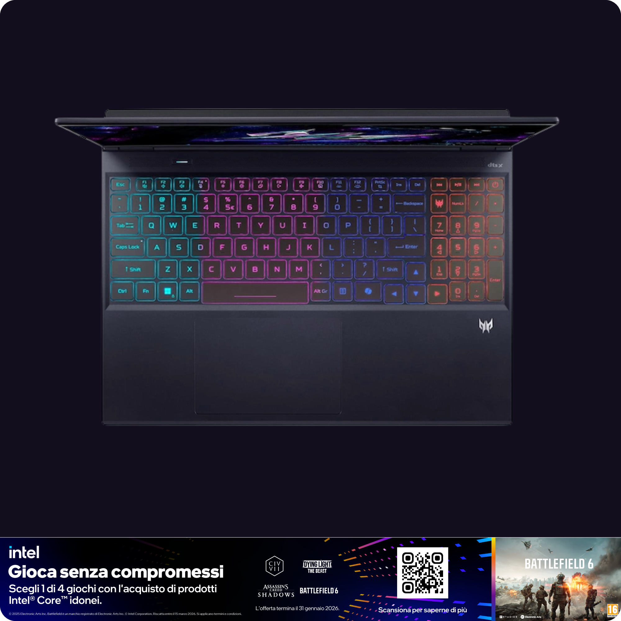 • TASTIERA: Illuminazione rgb 4 zone, Layout Italiano