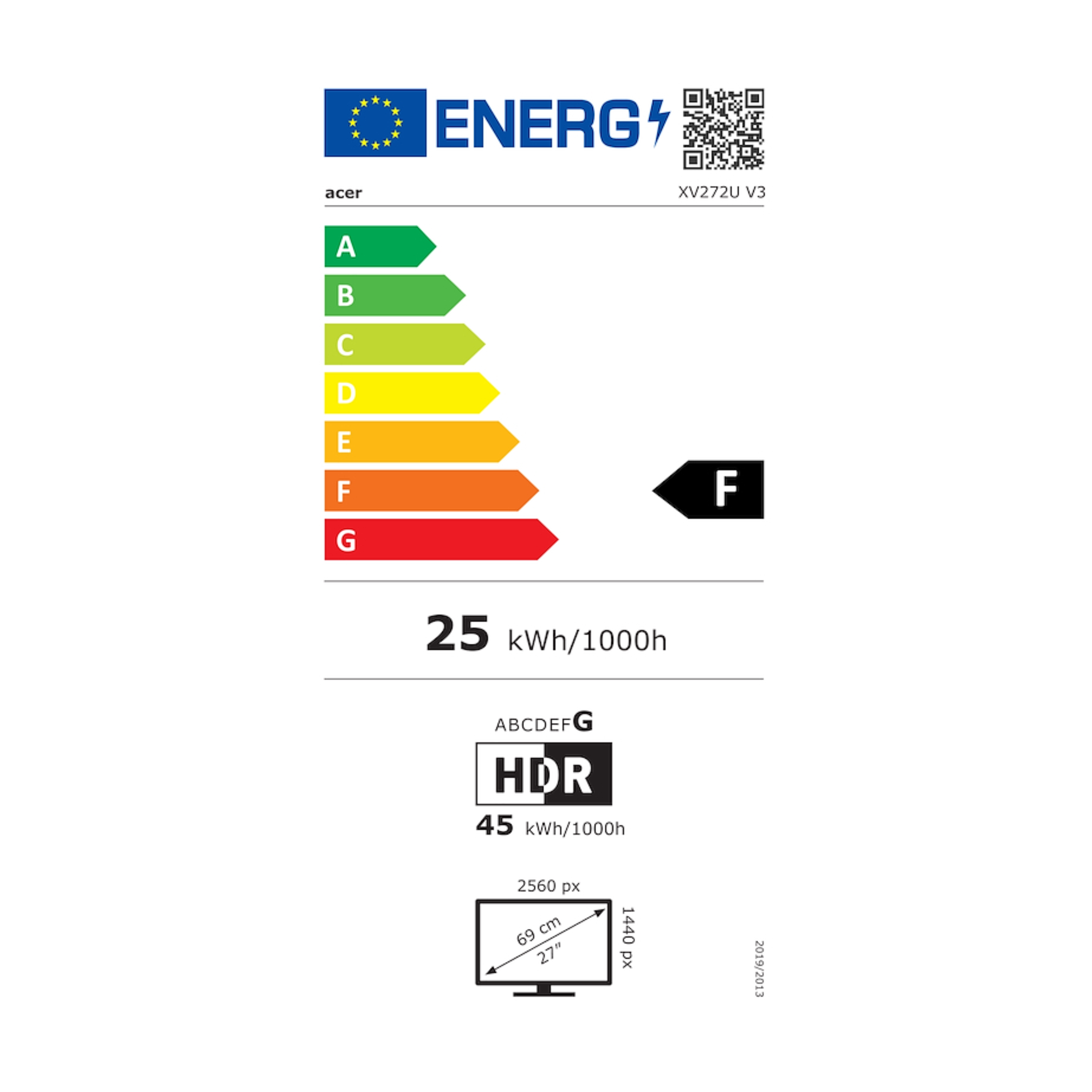 ACER Nitro XV272UV3bmiiprx, Monitor Gaming; 69 cm / 27" Flat screen/TFT, 16:9, Agile Splendor Low-Reflection IPS Panel, Resolution:2560x1440 ;180Hz DP, 144Hz HDMI , 350nits, 400nits HDR Peakcd/m2, Resp.Time 1ms/0.5ms(GTG,Min.), Input:2xHDMI(2.0) + 1xDP...